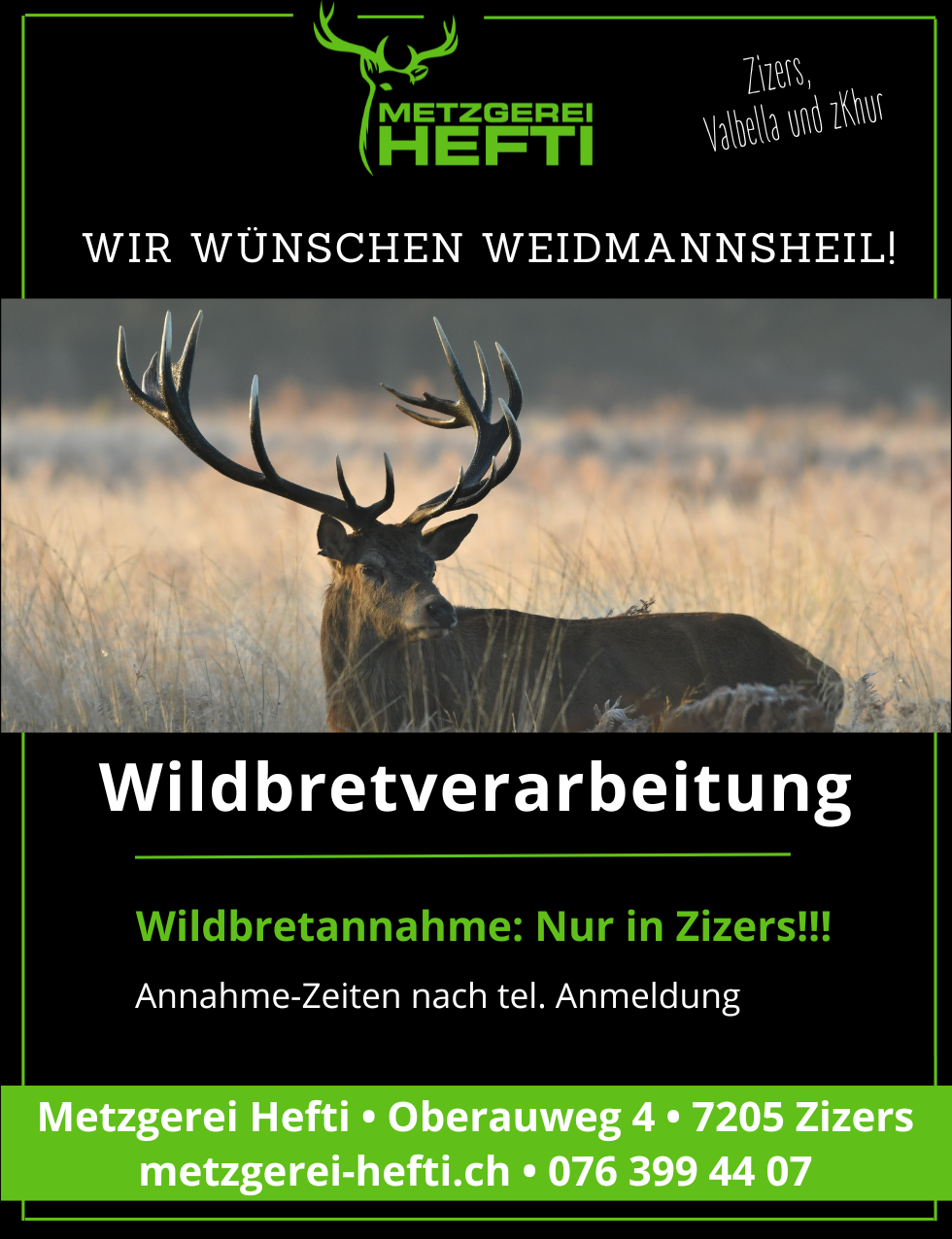 Für unsere Jäger/innen: Wildbretannahme nur in Zizers.
