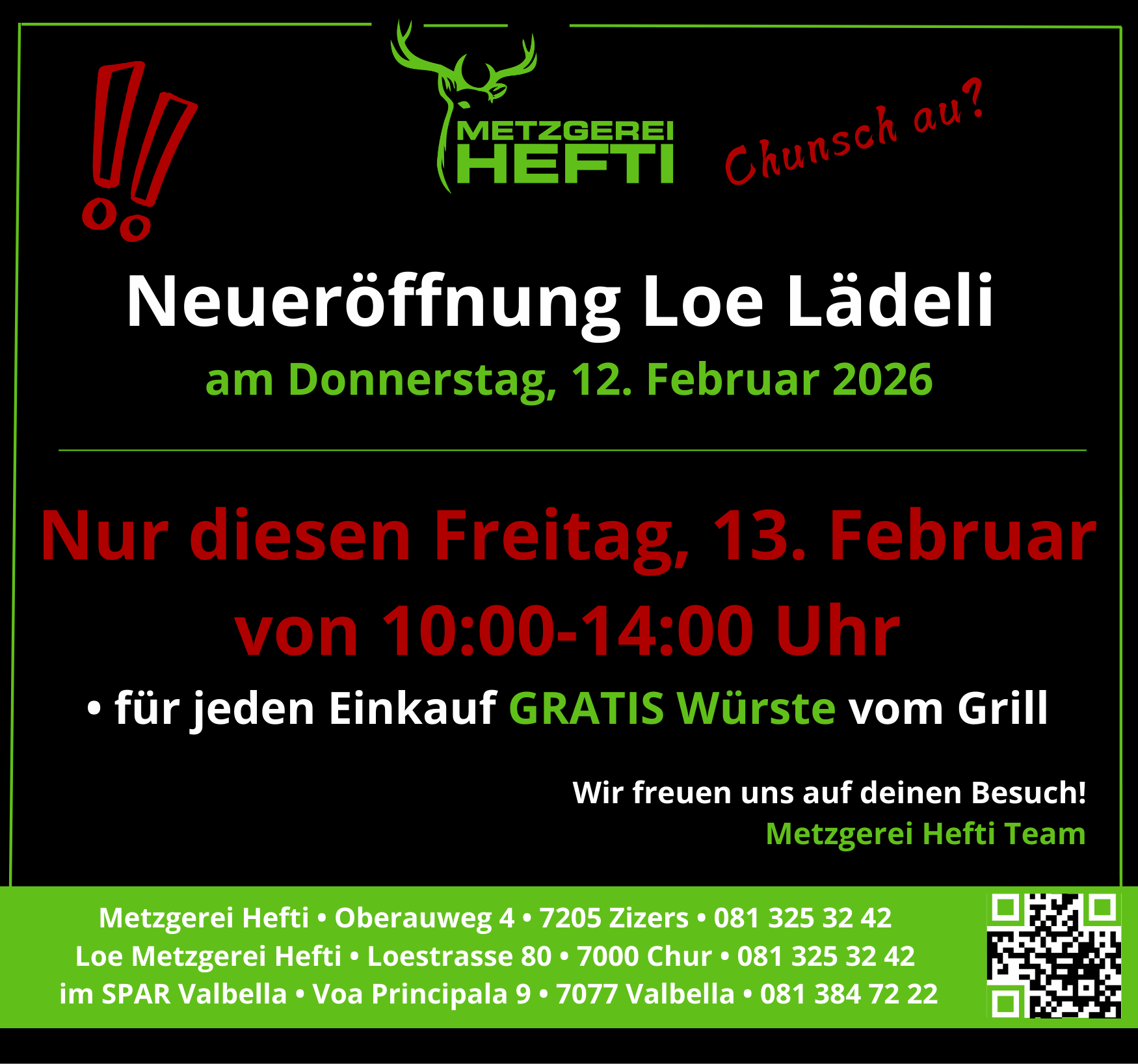 Ihr Metzgerei Hefti Team dankt für Ihre Kundentreue!